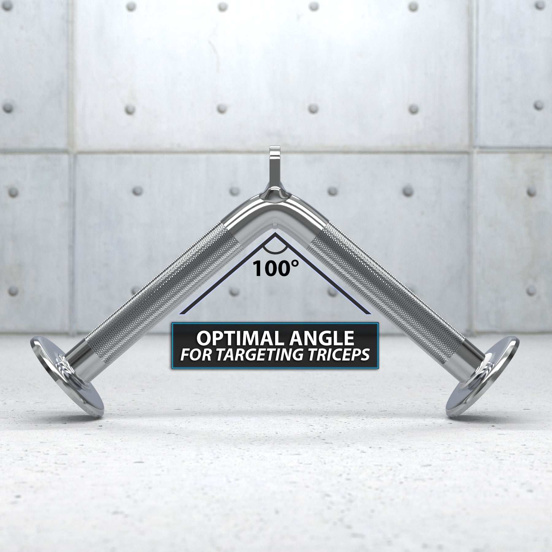 This Synergee V-Shaped Bar will allow you to build your triceps’ size and strength with perfect form! This unique Cable Attachment consists of a bar bent at an acute angle with stoppers on either end and knurling along the way for easy-to-grip handles. This V-Shaped Bar clips into your cable machine and is compatible with Cable Machine that has a standard carabiner attachment.