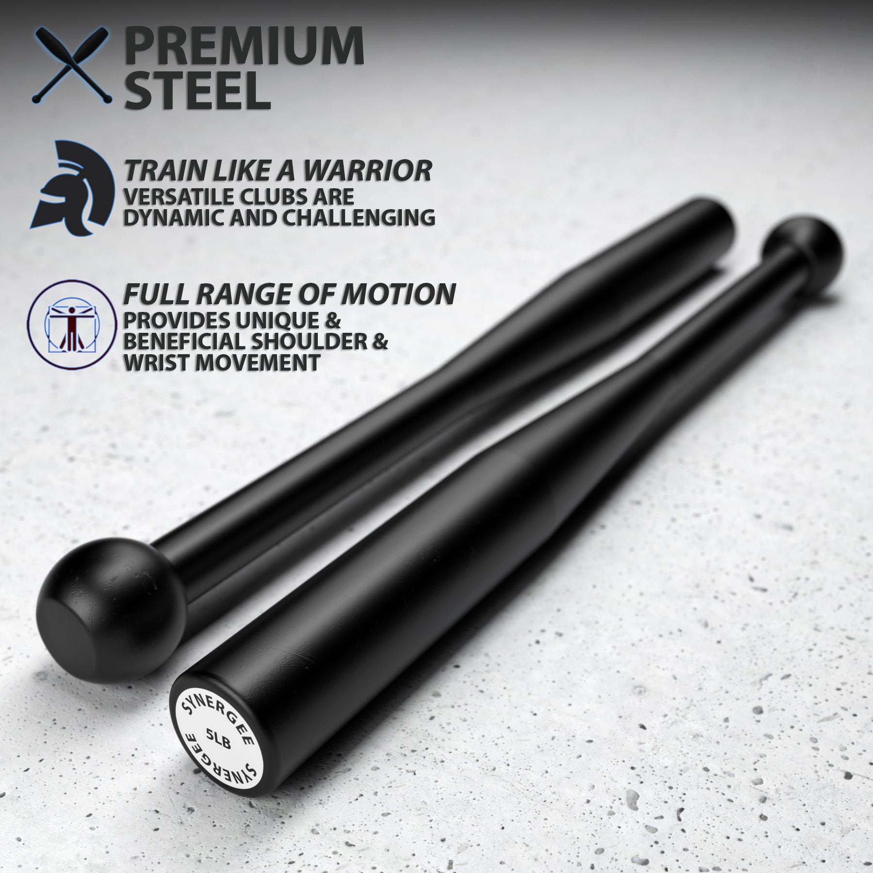 These clubs are extremely versatile. They allow you to perform dynamic, challenging movements that will provide your whole body with an awesome, unique workout. Your shoulders in particular will love it! The swings and rotations take your shoulders through a full range of motion, and provide unique & beneficial movements to your wrists and elbows, too!