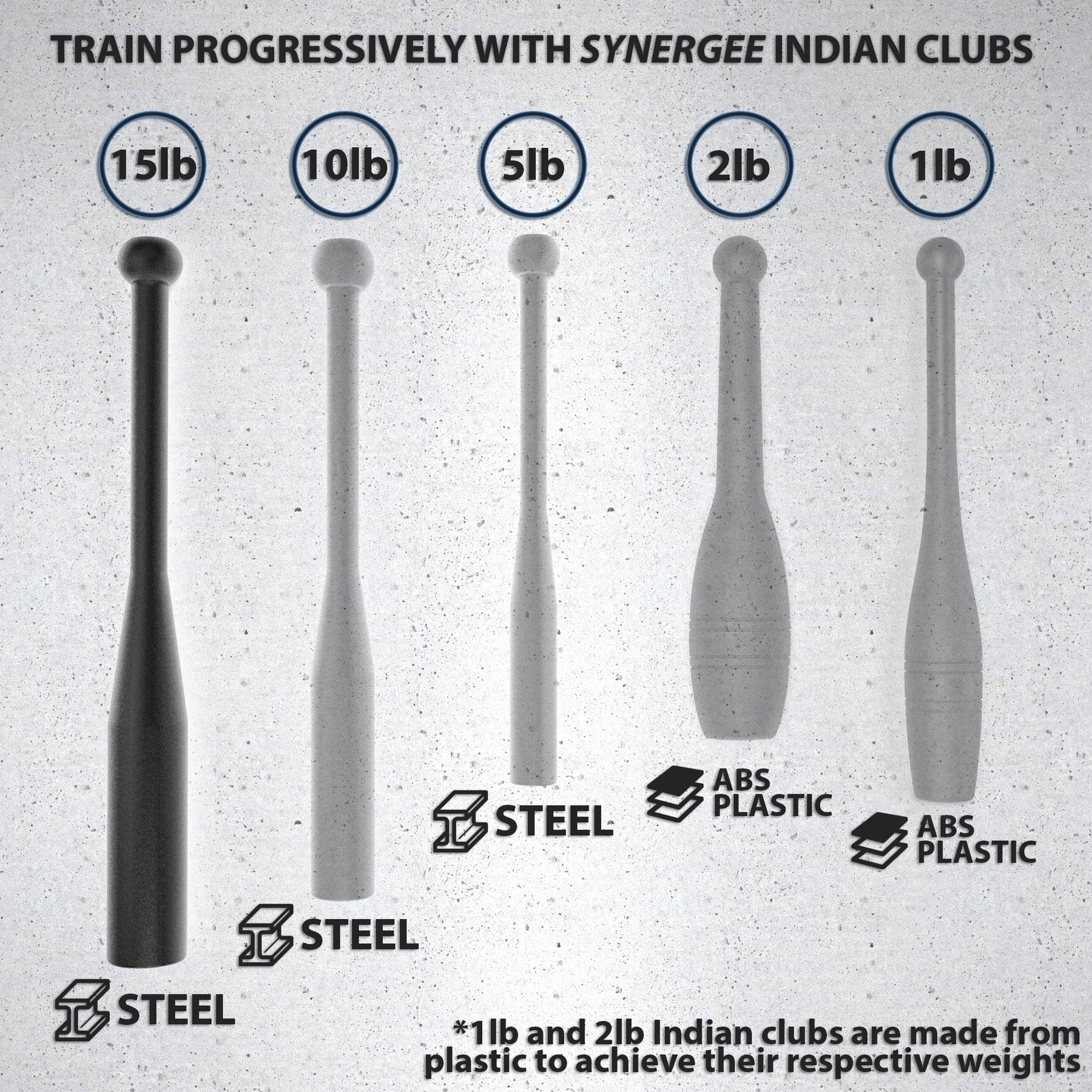 | 1lb Clubs | 2lb Clubs | 5lb Clubs | 10lb Clubs | 15lb Clubs | |