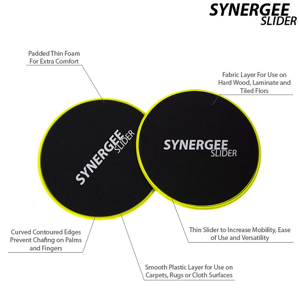 Slide into fitness with our Synergee Core Sliders! Get a total-body workout: from lunges and squats to push up variations, you can target specific muscle groups or tone your entire body with these discs. Plus, with virtually every move, you’ll be forced to engage your core and challenge your balance, giving you a strong abdominal workout every session!