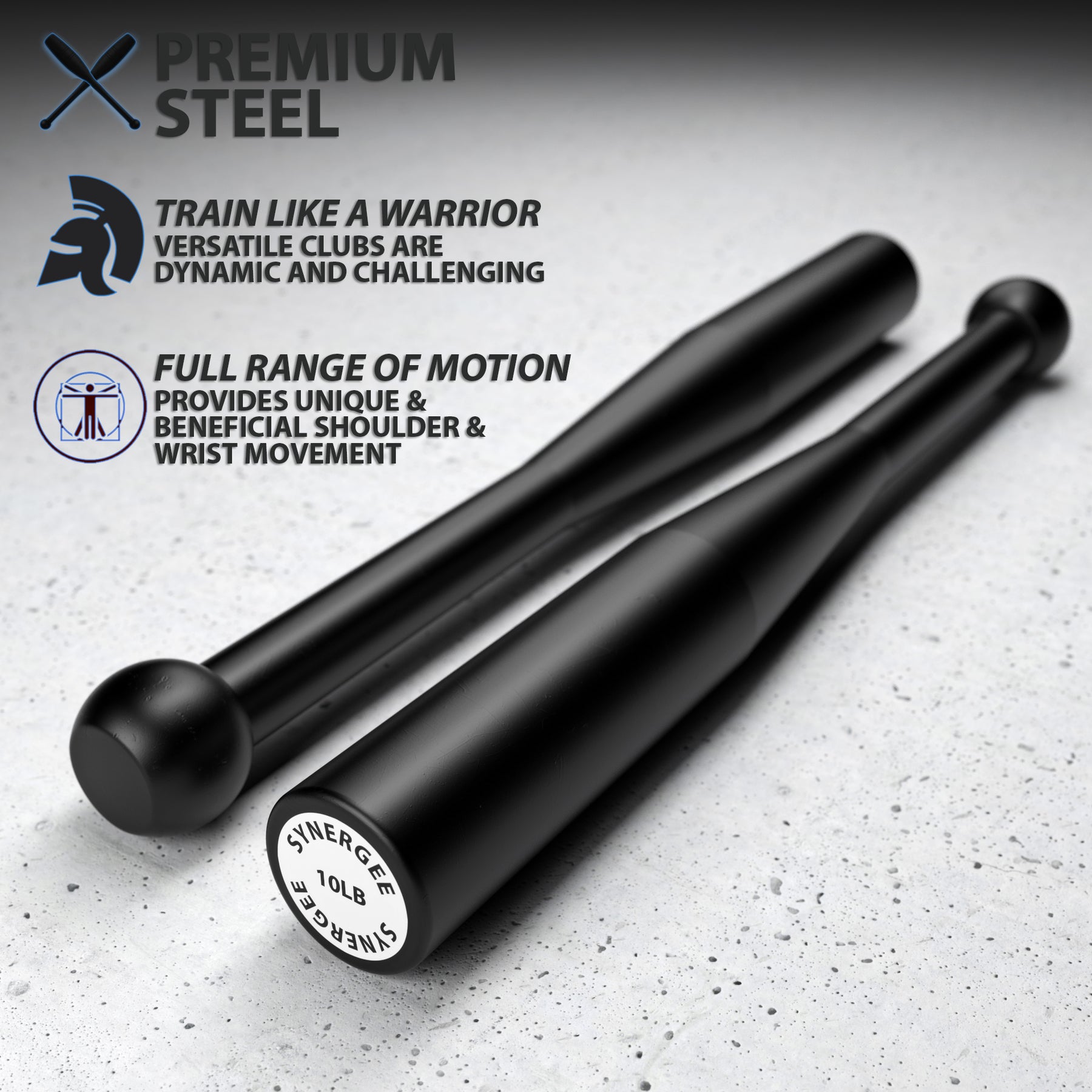 These clubs are extremely versatile. They allow you to perform dynamic, challenging movements that will provide your whole body with an awesome, unique workout. Your shoulders in particular will love it! The swings and rotations take your shoulders through a full range of motion, and provide unique & beneficial movements to your wrists and elbows, too!